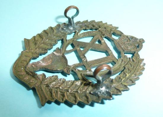 Die struck cap badge with two original loops to the reverse. Looks like a bronze finish. Oldham No 6/93 refers. Comm BoHa (159)