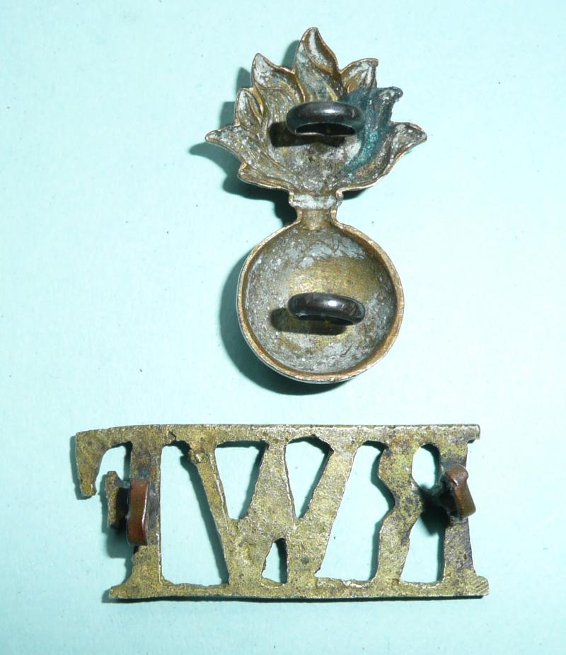 Grenade / RWF (Royal Welsh Fusiliers) Early Two Part Brass Shoulder Title