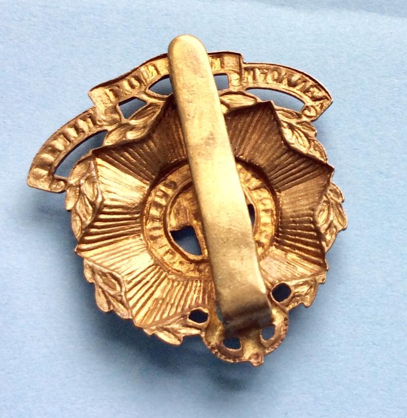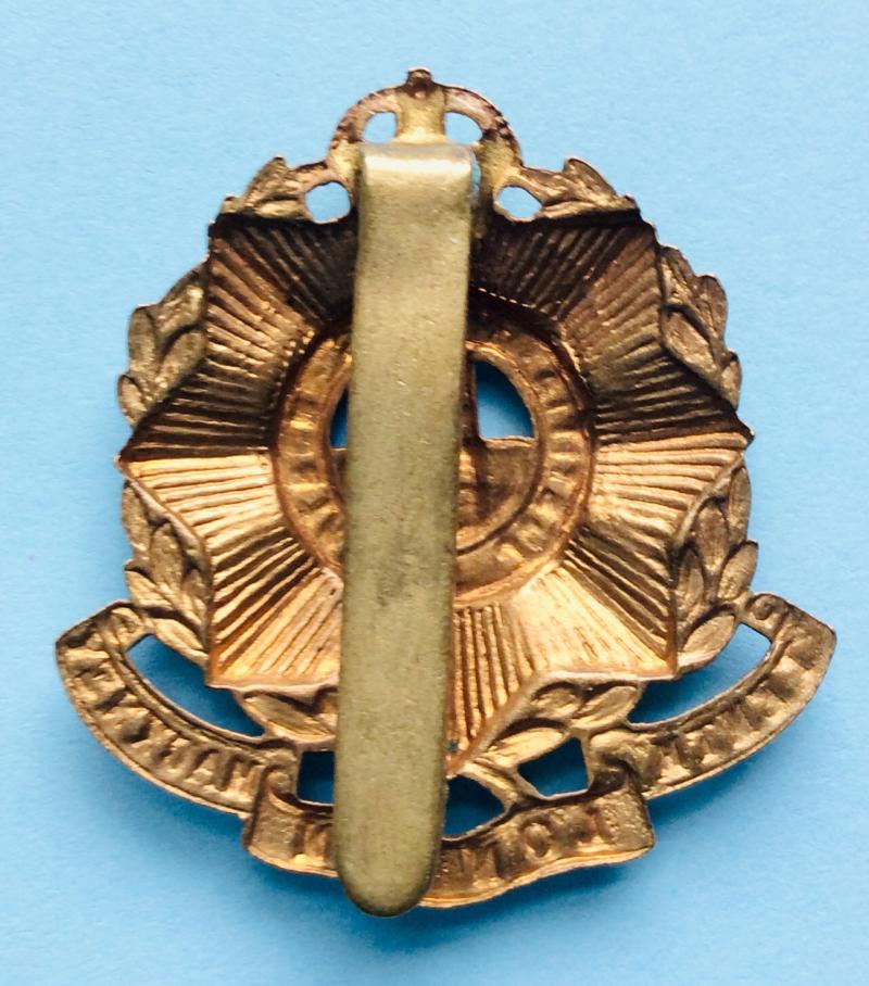 Brass die struck Cap Badge with original slider. Small spot of verdigris otherwise in very good condition. Worn from 1912 - 1937. Coll