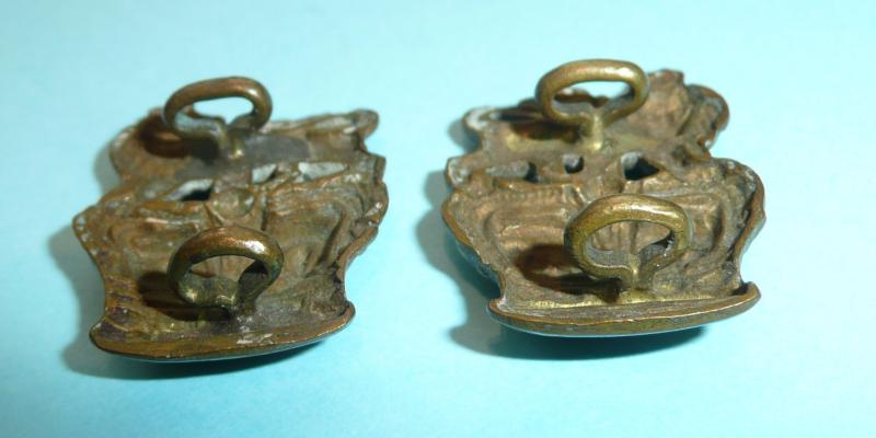 A facing pair with brass lugs. Churchill suggests introduced in 1899 and replaced in 1902 with a King's crown version. This basic pattern worn from 1881.