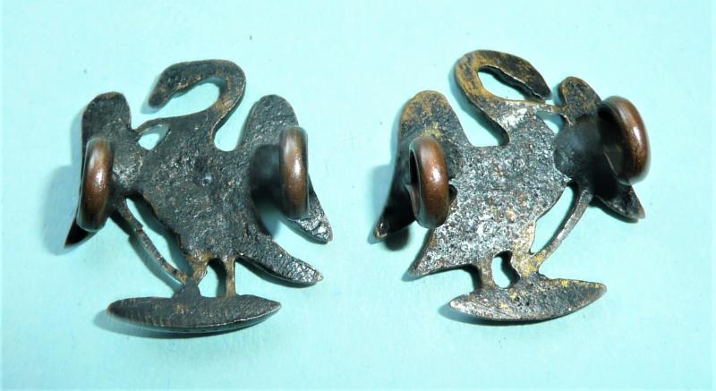 Worn from 1876 until 1908. From 1881 known as 3rd Volunteer Battalion. retaining its status as a rifle regiment and pretty much its RVC uniform, becoming the Buckinghamshire Battalion in 1908. Attractive wear to black finish on the highpoints otherwise in very good condition and nicely curved / domed. Circa 2.1cm tall. Worn in facing pairs (thanks to Stephen for the confirmation). Scarce.
