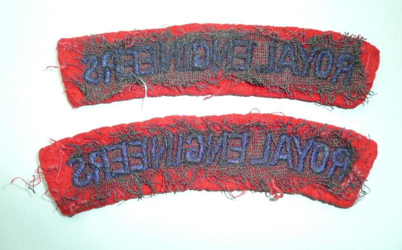 Royal Engineers Matched Pair of Embroidered Blue on Red Felt Cloth Shoulder Titles