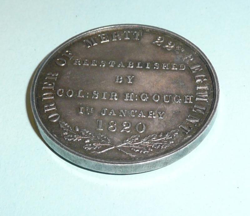 Basically, the paucity of campaign medals awarded to the 22nd Foot in the early 19th Century era, the series of regimental medals, were the only tangible means of recognising the individual services of long service veterans in the regiment.