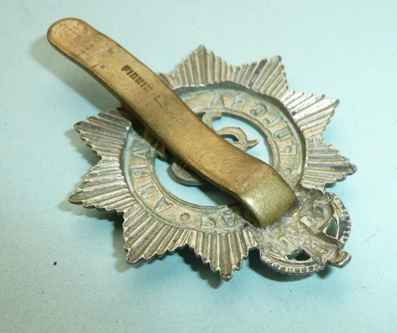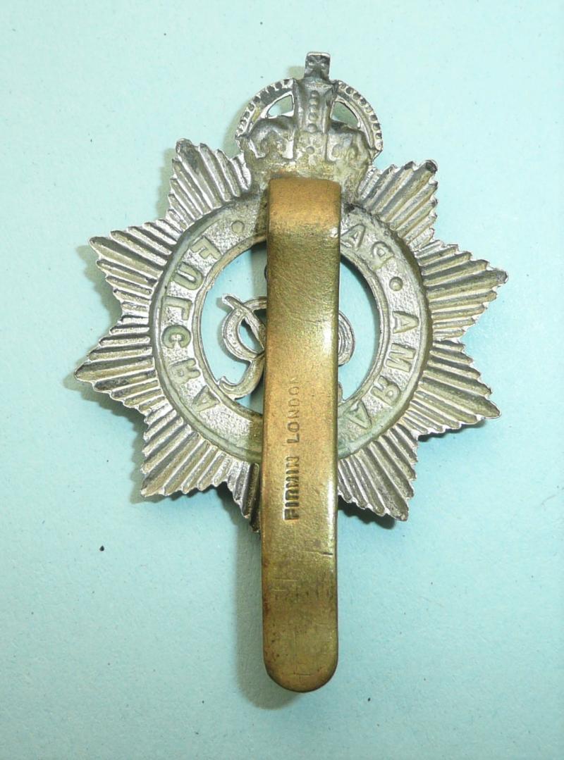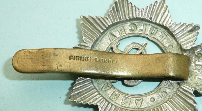A die struck white metal cap badge, with King George VI cypher neatly voided with original slider, maker marked Firmin London. Some light polishing to detail of crown and slider shows signs of service wear otherwise in good condition. An attractive badge.
