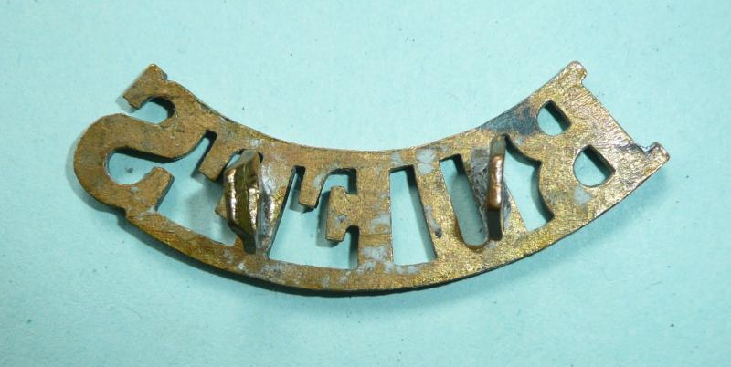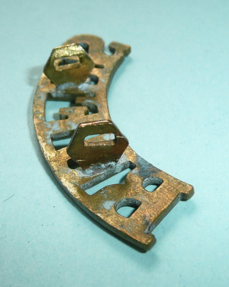 Post 1902 other ranks brass shoulder title with two original hexagonal fixings to the reverse. Westlake No 744 refers. Comm RoHa (B3)