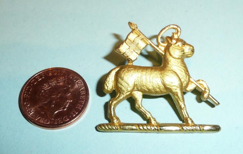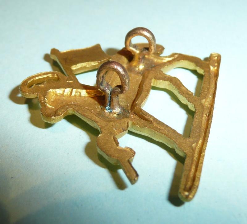 A simply stunning frosted gilt die cast collar badge facing to the right with two original D shaped loops. Circa 3.5cms wide and 3.2cms tall. Worn 1924 - 1959. Scarce.