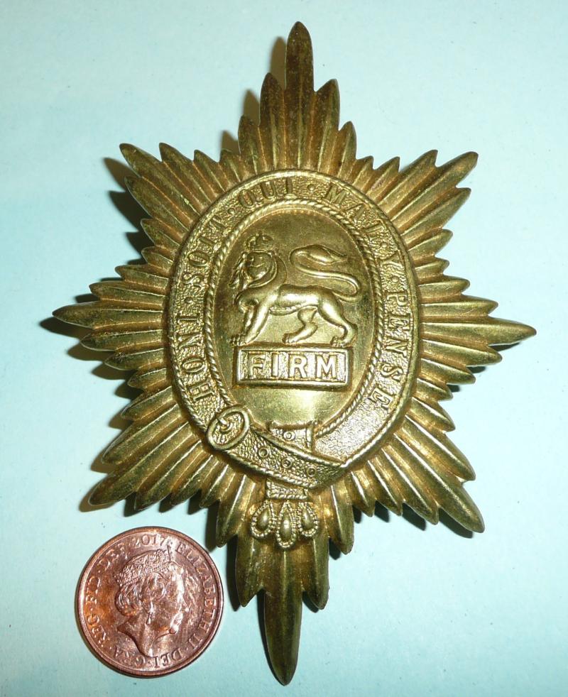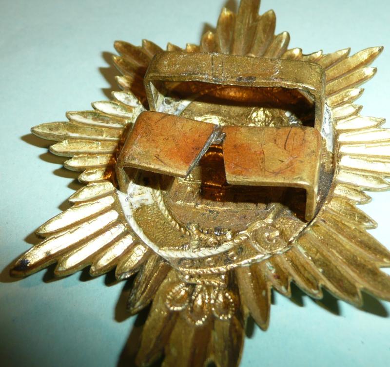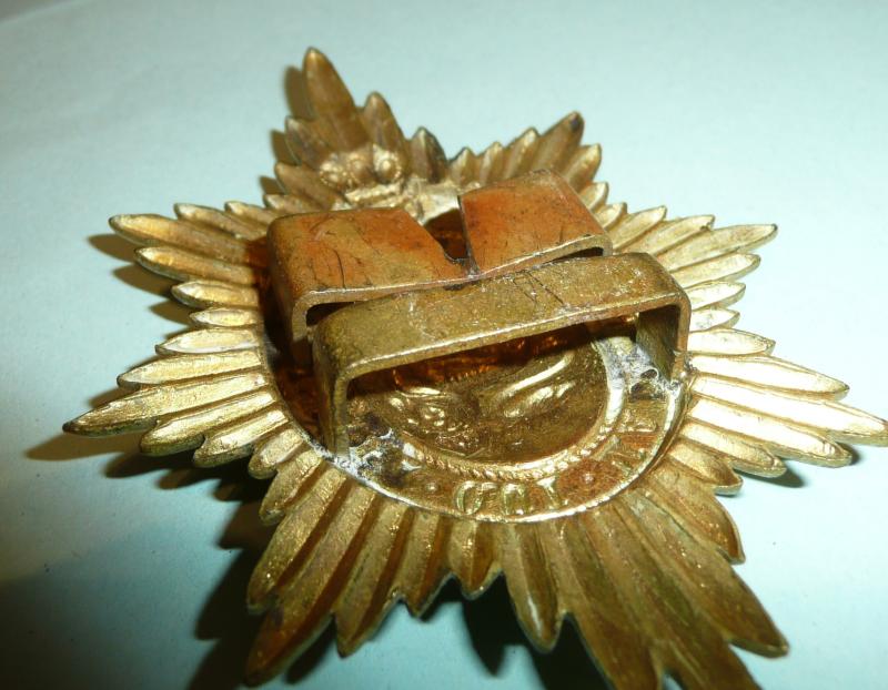 A gilding metal valise badge for The Worcestershire Regiment with an original 'double box' fastening (the bottom one has a notch cut out, but still functional). Circa 10cms tall. This is the fifth pattern as worn from 1952. Slight polishing to detail of the lion otherwise in good condition.