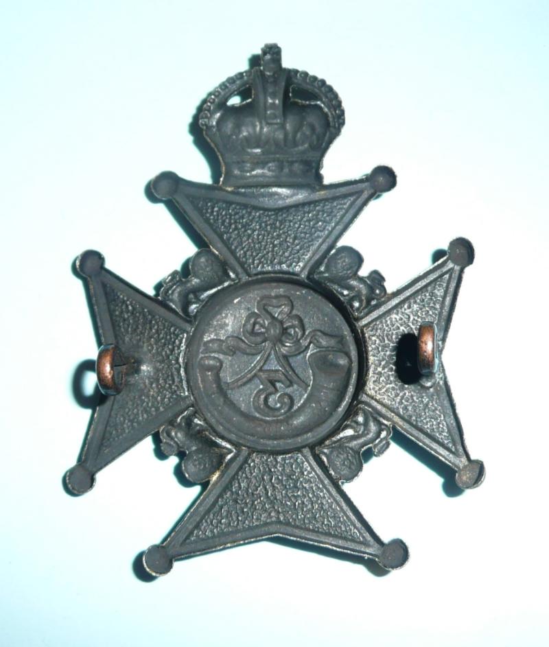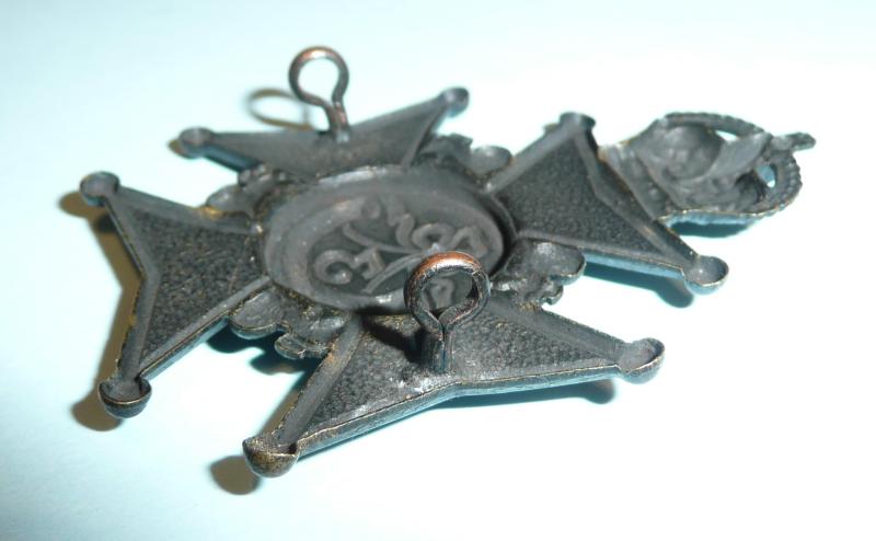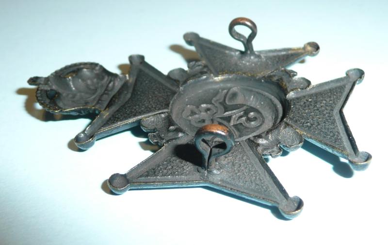 A large good scarce die-stamped blackened copper crowned Maltese cross (KRRC pattern in style) issue on two original loops (east - west). King's Crown. Circa 1901 - 1914. Circa 6.3cms tall. Slight wear to black finish on highpoints otherwise in very good condition.