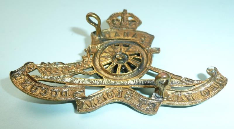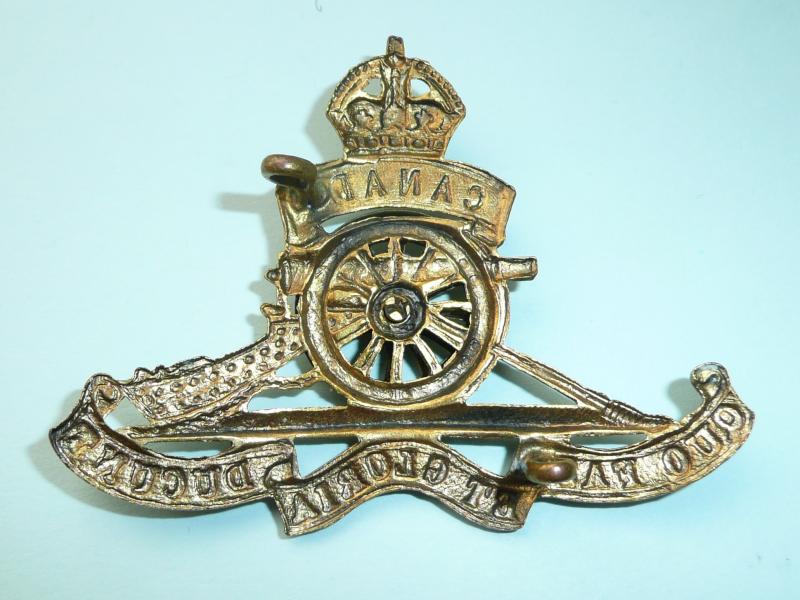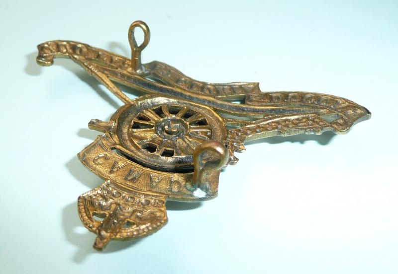 WW1 Canadian Artillery Officer's Gilt Brass Cap Badge with turning wheel