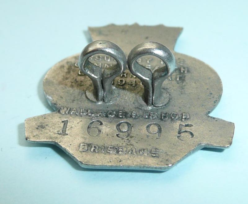 Australian Merchant Navy lapel badge – No. 16995. Maker marked Wallace Bishop Brisbane. Dated 1940. Complete with two original lugs. Scarce.