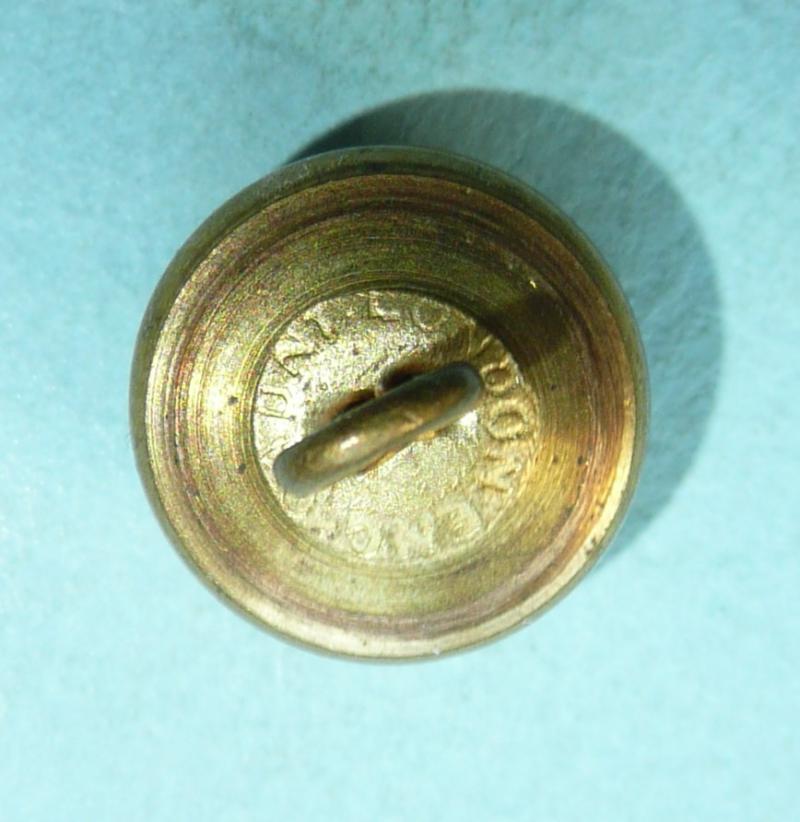 Circa 13.5mm in diameter, fixed shank and maker marked Gaunt London Eng. King's Crown. In very good condition. D10