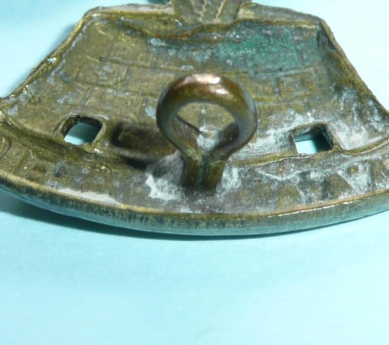 Some loss of detail of bricks in the coronet from service wear with two brass loops (n-s) otherwise a good yellow brass example. Comm RoHa (B3)