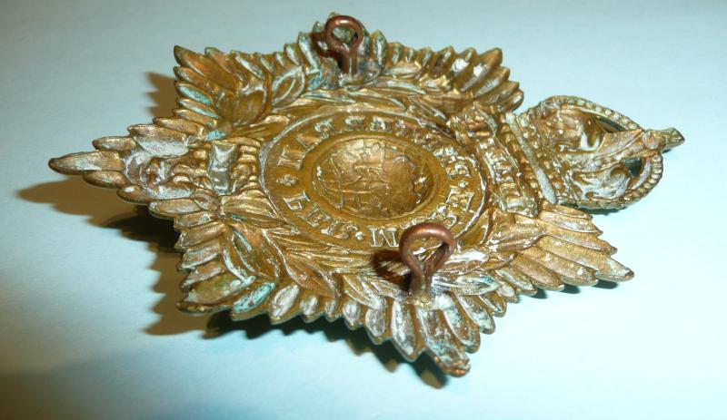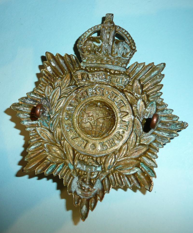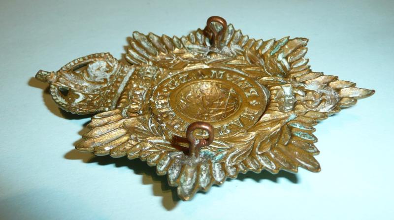 A good stiff brass helmet plate to the Royal Marines with two original loops to the reverse (east - west). Slight polishing to the continents on the globe otherwise in very good condition. Circa 8.5cm tall.
