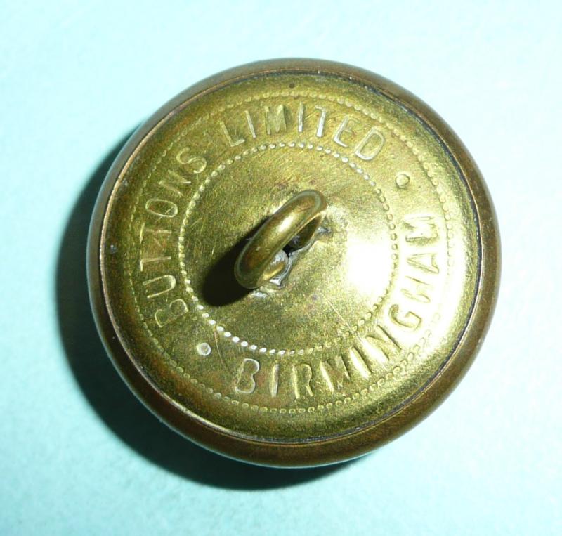 Circa 26mm in diameter, fixed shank and maker marked Buttons Limited, Birmingham. Gilt bright, slight stain otherwise in very good condition. Comm GrSt