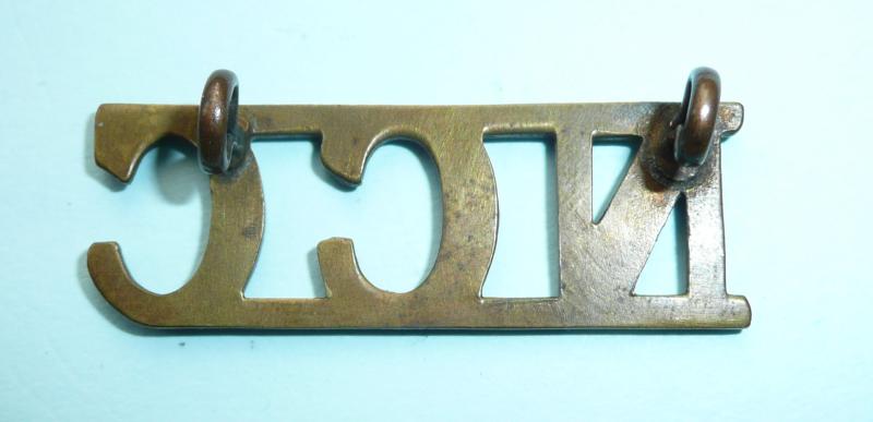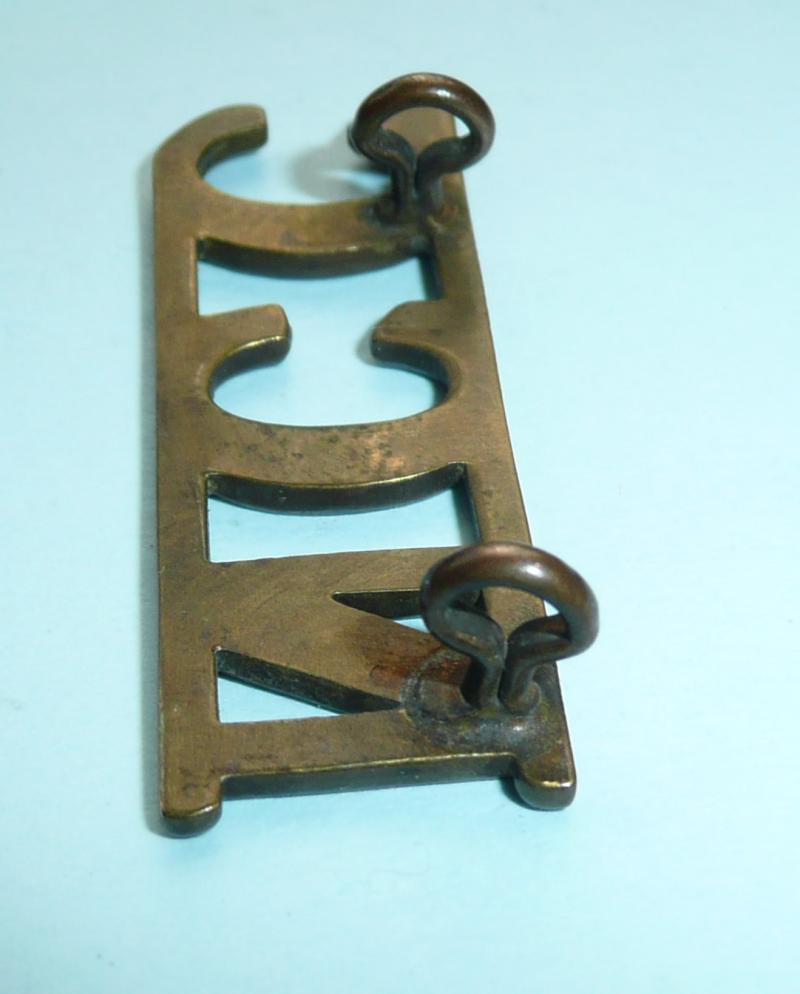 As worn in both WW1 and WW2 and also as a cap badge as well as a shoulder title. In very good condition with two original loops. Scarce. Westlake No 394 refers. Comm BoHa (249)