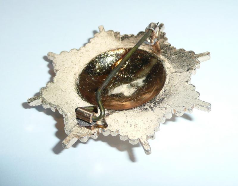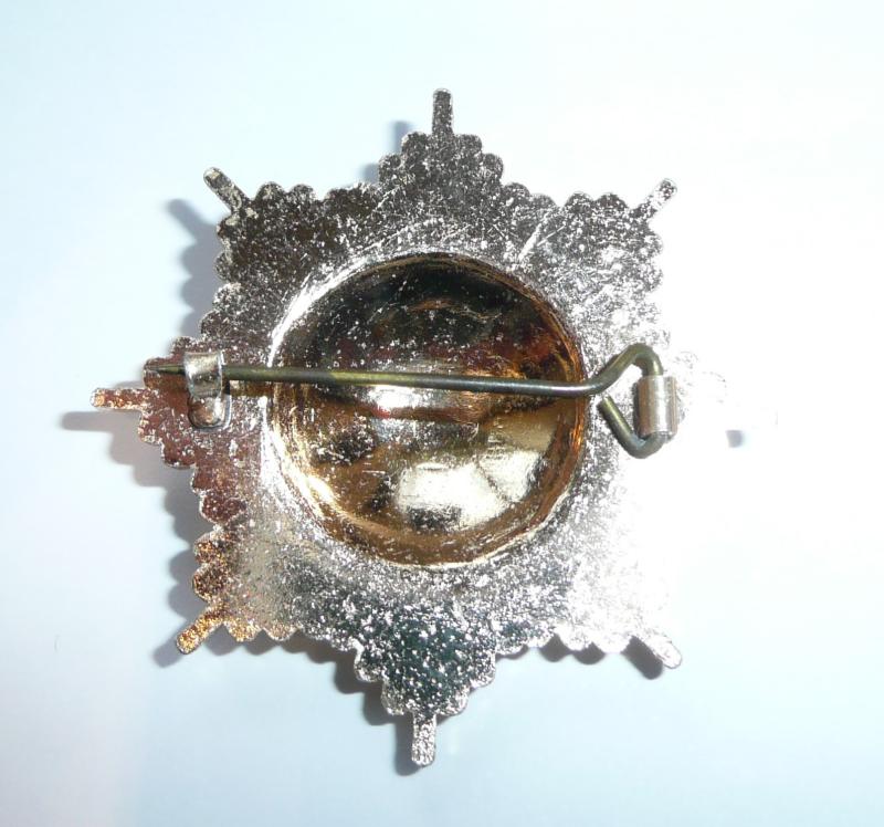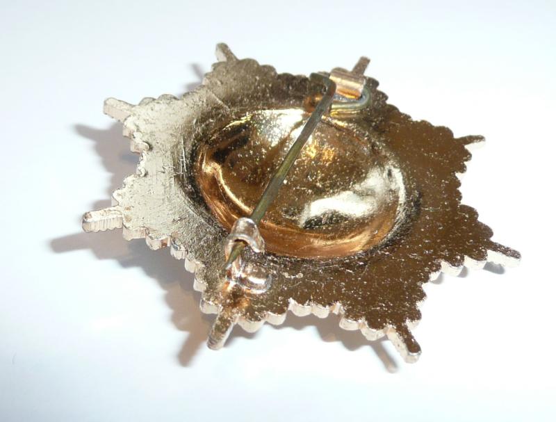 An Anodised aluminum sleeve badge with original brooch pin fitting to the reverse worn by Women's Royal Army Corps (WRAC) personnel at the Guards Depot at Pirbright. A queen's crown to the centre of a circlet bearing the motto on a multi-rayed star carrying the title: " Guards Depot ". In very good condition.