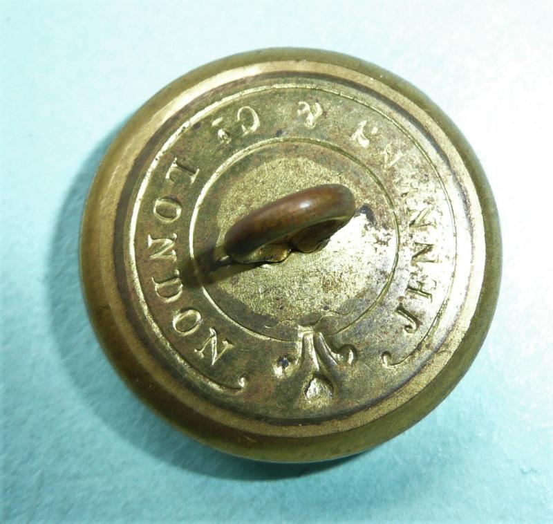 Circa 26mm wide, fixed shank, maker marked Jennens & Co London with PoW feathers. An early Army Veterinary Corps Officer's Button, worn circa 1906 - 1910 with King Edward VII cypher to centre. In very good condition, gilt bright. Rare.
