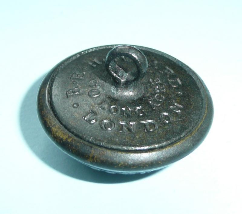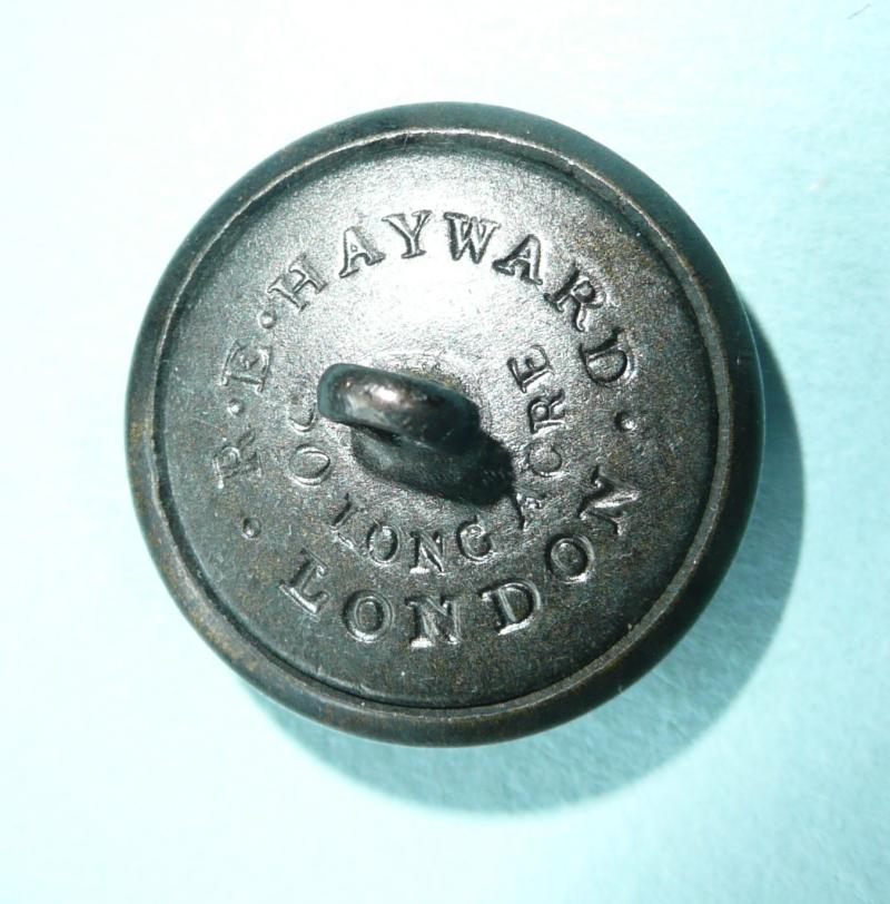 Circa 23mm in diameter, fixed shank, maker / military outfitter marked R E Hayward, 50 Long Acre, London (at this address from 1853 - 1895). Coat of Arms on Shield below a QVC crown. Worn from 1860 - 1880. Scarce.