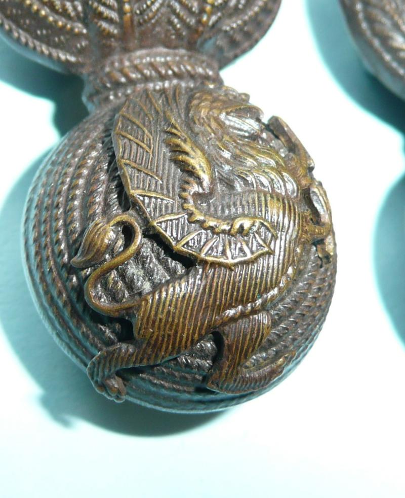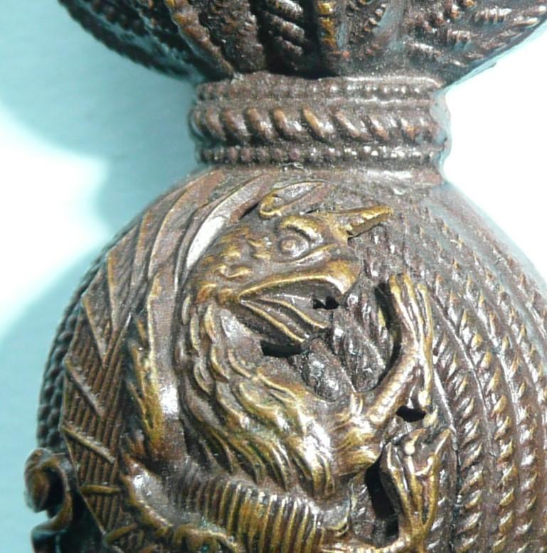 Facing, but not matching although a good match from the front, of two part construction with two original loops to the reverse of each. A pre 1922 pattern issue without the loop in the tail. These are also Griffins rather than the later adopted Dragoons. Worn 1902 - 1922.