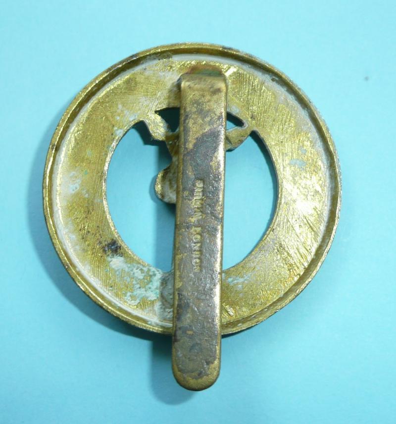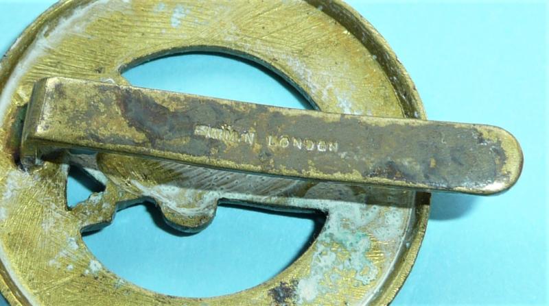 A good post 1911 British made die-cast rich gilt “TANGANYIKA TERRITORY” circlet with giraffe’s head to voided centre. Firmin, London on its original slider. Some minorwear but most of the markings on the giraffe's next still sharp. A couple of obvious die flaws where the two "T"s in the title strap have been struck otherwise a pleasing example. Renfrew et al No 665 refers.