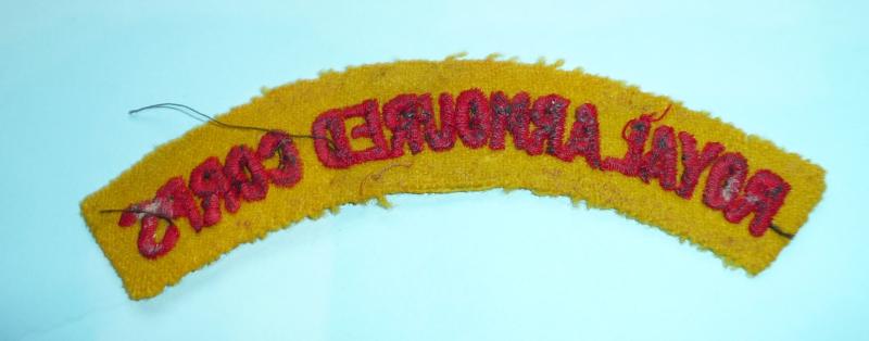 Royal Armoured Corps (RAC) Woven Red on Yellow Cloth Felt Shoulder Title