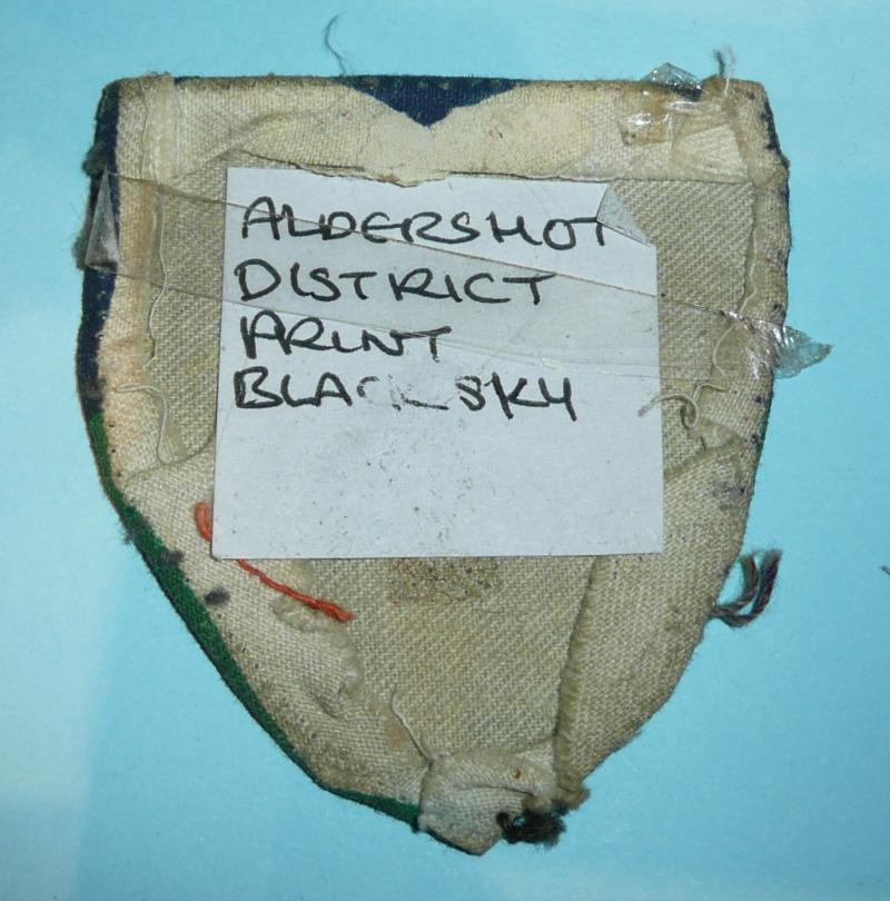 Removed from uniform and in worn condition with cellotape with unit identification to reverse. Sky looks dark blue to me not black! Worn from 1944 until 1948 only. Crossed beams of searchlights over a torch of learning.