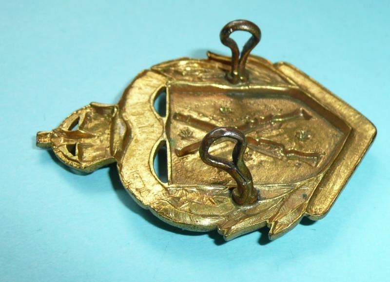 Semi die cast with two original loops and gilt finish intact and bright. Maker marked to reverse Swann & Hudson, Frankston. King's crown. Cap badge measures circa 44mm tall. Korean War era badge.