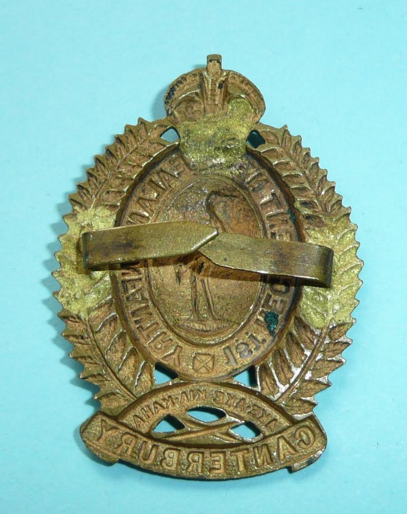 WW1 New Zealand - 1st (Canterbury) Regiment Gilding Metal Cap Badge - Blades