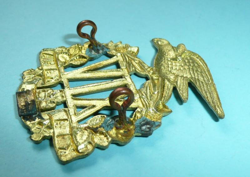 Voided brass gilding metal example with two original loops and a maker's plaque for JR Gaunt London to base of the reverse. Slight touch of verdigris to the rose on the right and around the loops to the reverse otherwise in great condition. Worn from 1911 - 1921.