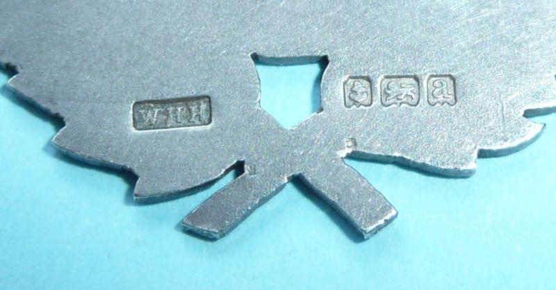 Hand cut with engraved detail and original fully functional stout pin fitting. Crown to top. Maker marked 'W.H.H.' and Birmingham assay letter 'a' lower case (1900). In superb condition with no damage or polishing. Scarce.