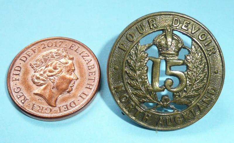WW1 New Zealand - 15th (North Auckland) Infantry Regiment Collar Badge - Gaunt Tablet
