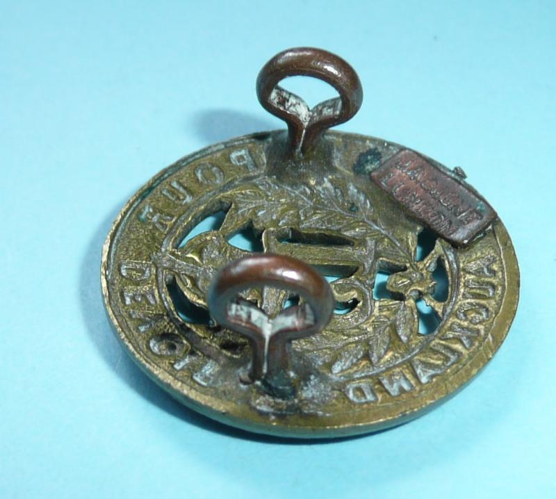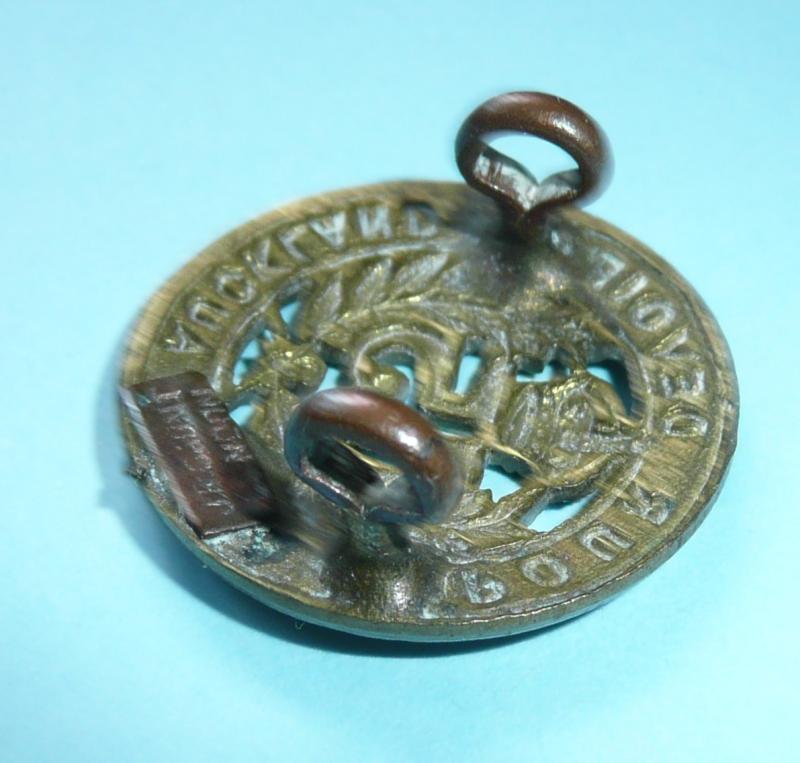 two original loops to the reverse (D shaped) and with a JR Gaunt London maker's tablet. Circa 2.3cms in diameter. This pattern with unvoided fern leaves. Motto: 'Pour Devior' (For Right). King's Crown. There was a later QEII version with a Queen's Crown.