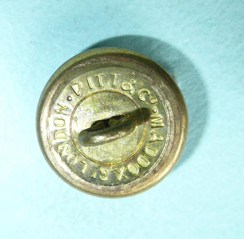 A scarce officer's mounted button, circa 15mm in diameter, as worn no side cap and mess dress. Fixed shank and maker marked Pitt & Co, Maddox St, London. Some slight polish from service wear to high points otherwise in very good condition. Worn 1920 - 1946.