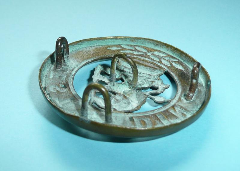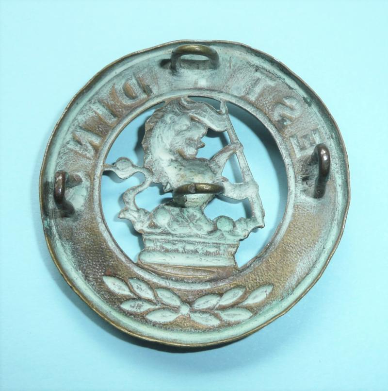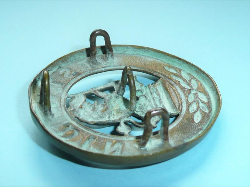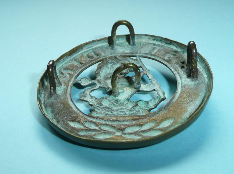 With all four original brass staple style loops. Some loss of detail from polishing to the central lion and a touch of verdigris to front right laurel leaves otherwise in good overall condition. Worn 1881 - 1914 on the Helmet Plate Centre and, until 1895, on the Glengarry.