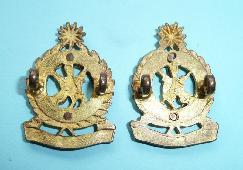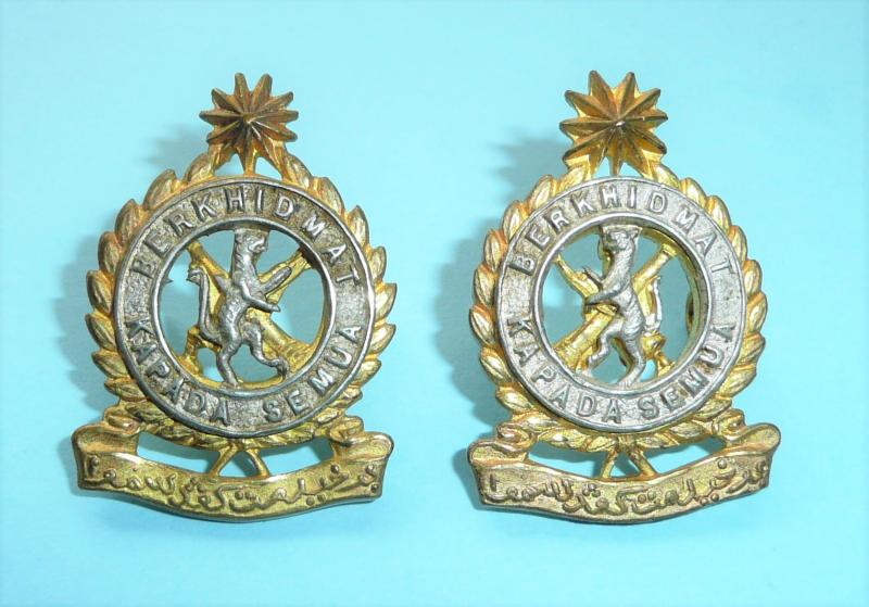 Federated Malay Armed Forces Maintenance Corps Officer's Matched & Facing Cast Bi Metal Collar Badges