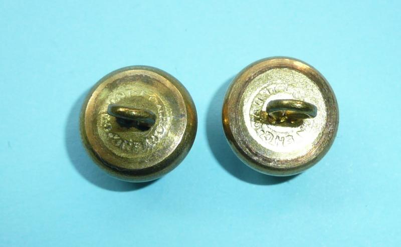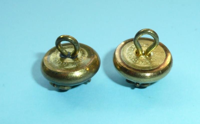 Scarce pair of gilt mounted buttons, with fixed shanks and maker marked JR Gaunt London. Not quite matching but not an issue when on either side of a cap. Gilt bright, in very good condition. Circa 1952 - 1970 (Gaunt London address).