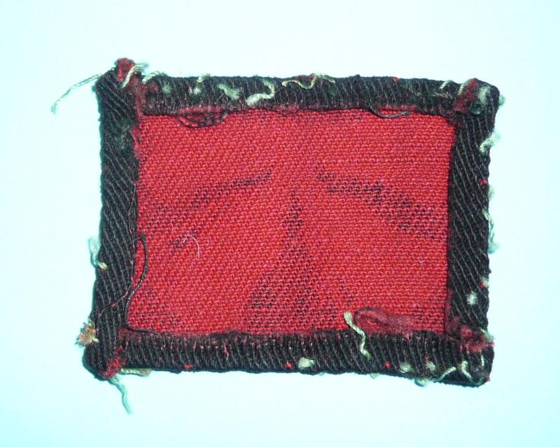2nd Pattern Rectangular, circa 5.2cm by 4cm. Removed from uniform but in very good condition. The red bells on a black background. Finely woven in silk.