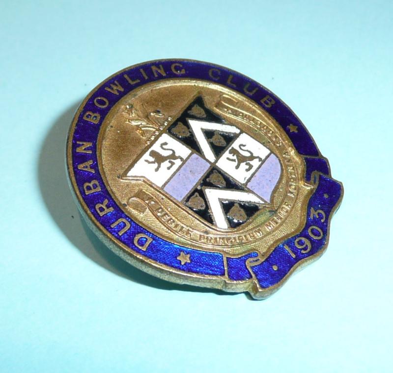 South Africa - Durban Bowling Club 1903 Dated Enamel and Gilt Pin Brooch Badge