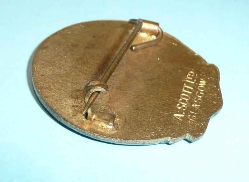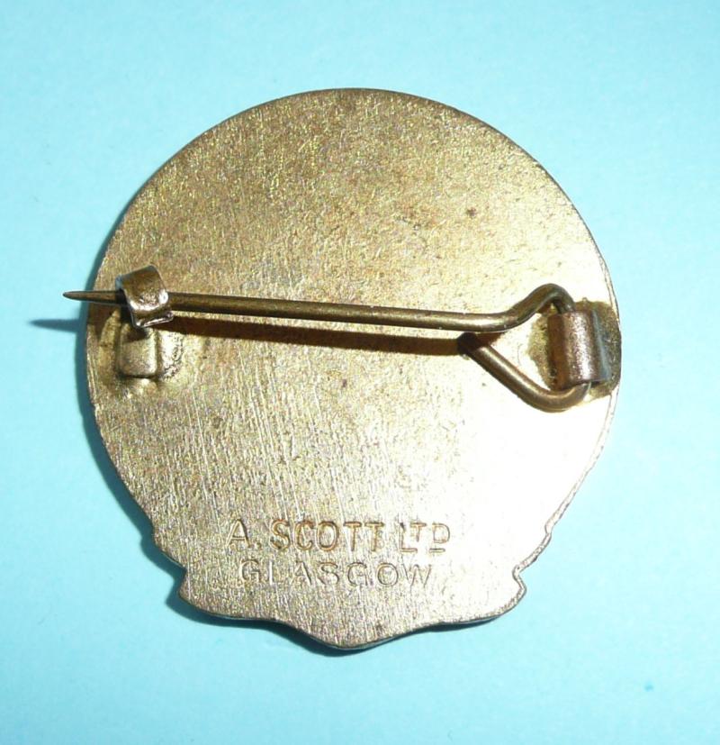 In good condition and not something I would usually list but a good early date and UK made in Glasgow by 'A Scott Ltd'. Gilt bright and enamel intact. Original and fully functional pin fitting.