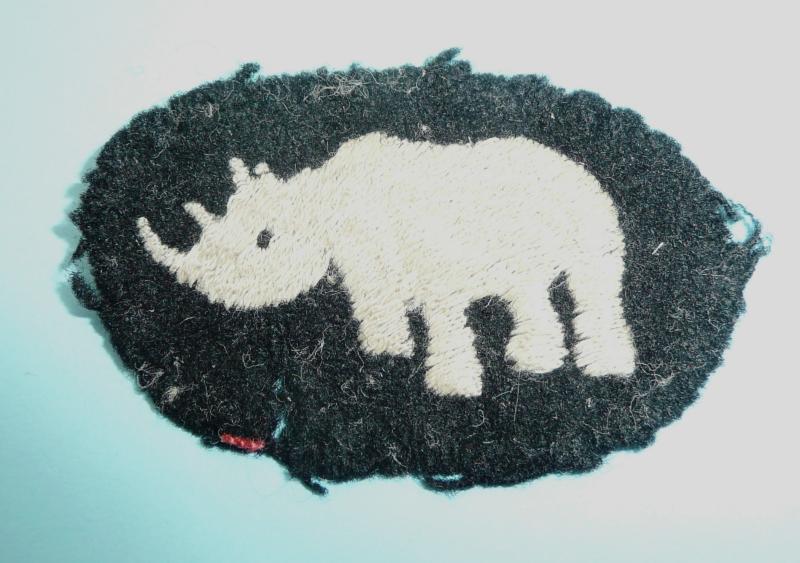 Removed from uniform, Rhino facing right. Some raggy edges and one tear otherwise in reasonable overall condition. K14.6