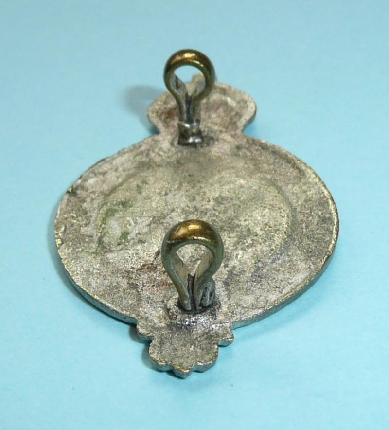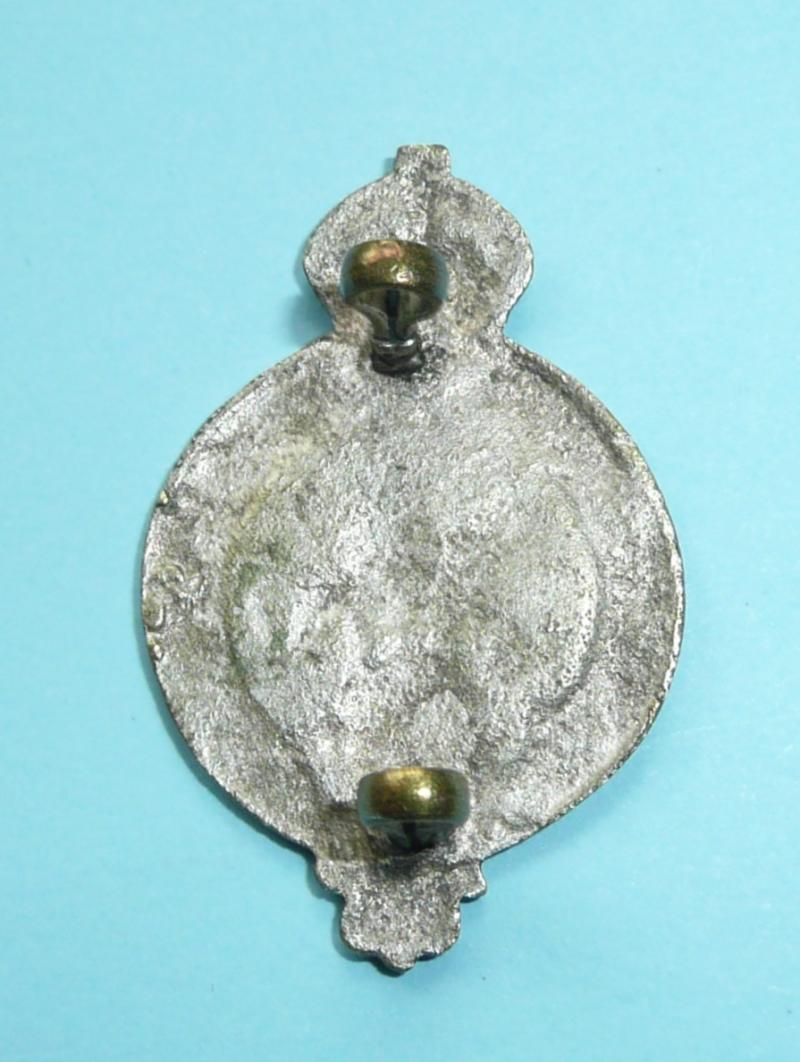 A theatre cast white metal cap badge with two original loops to the reverse. King's Crown. Circa 35mm tall. In good overall condition. Comm TeMo
