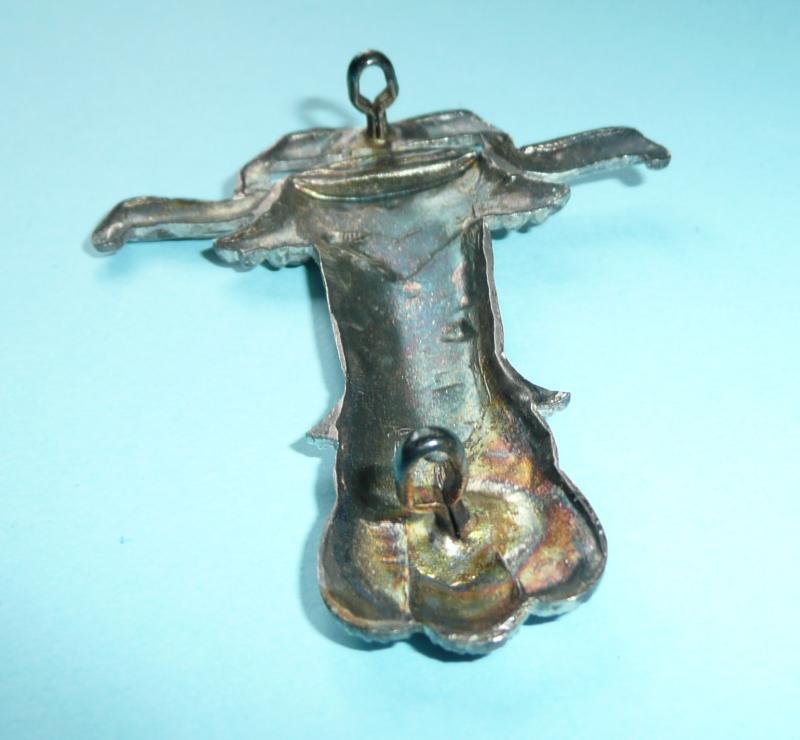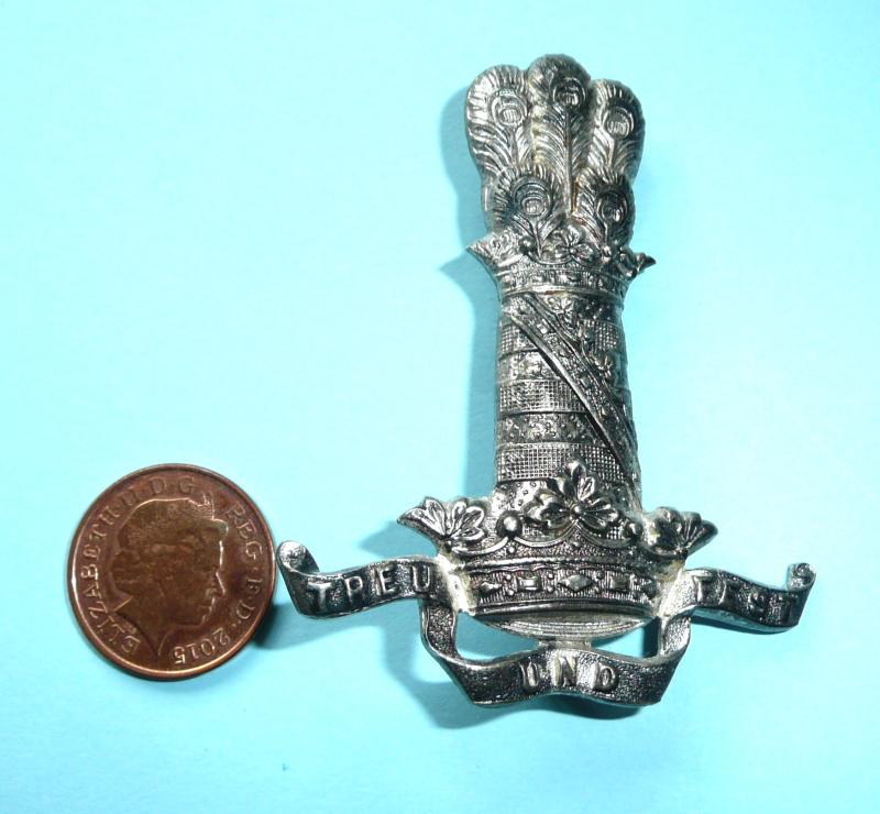A very fine solid die-struck (semi-cast) silver plated crest of Prince Albert on two original lugs (sanctioned for wear in 1876, but this pattern was actually worn in the 1950s). Circa 6cm tall. Minor toning to silver finish.