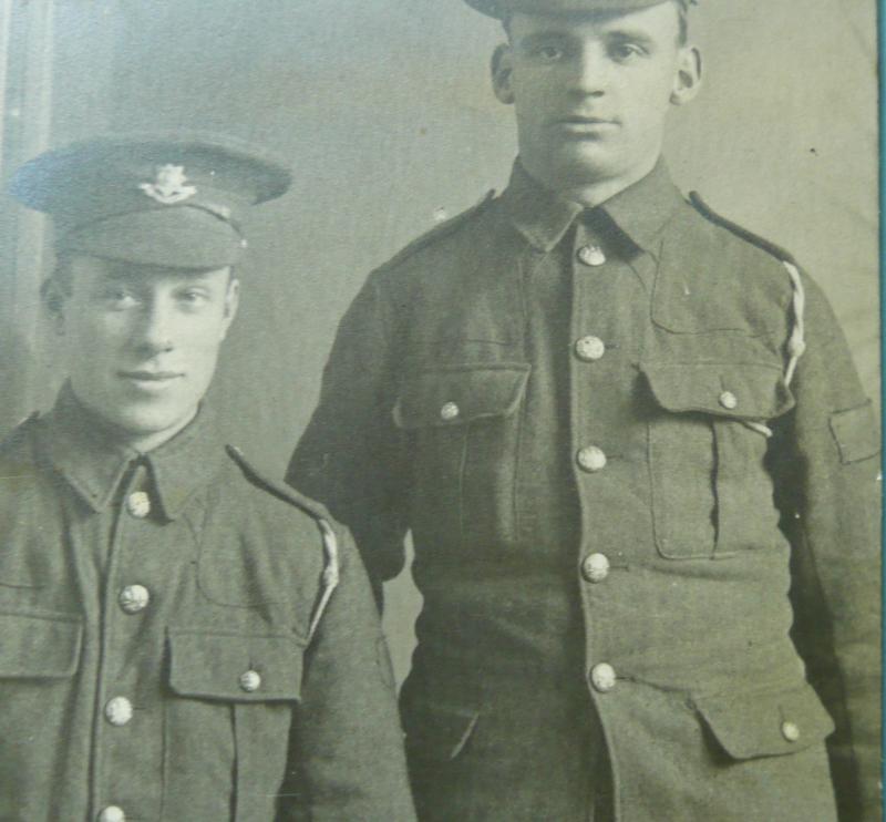Postally unused, Worcester photographer, clear image of cap badges, private on right appears to be sporting a rectangular flash, the one on left, possibly a circular one, but less obvious. Slight light crease in centre of space above heads and slight corner edge wear otherwise in very good condition.