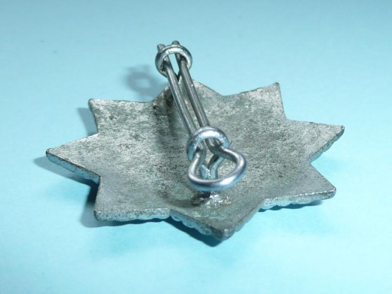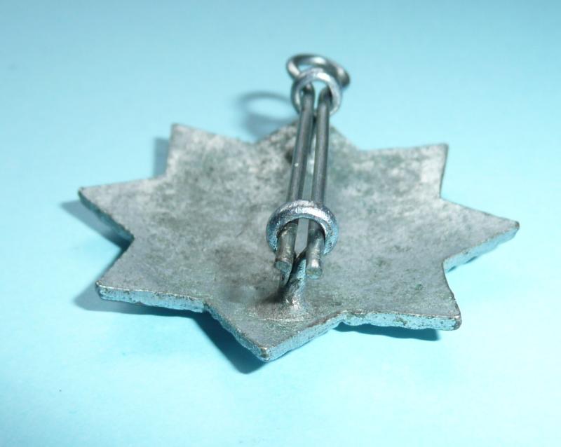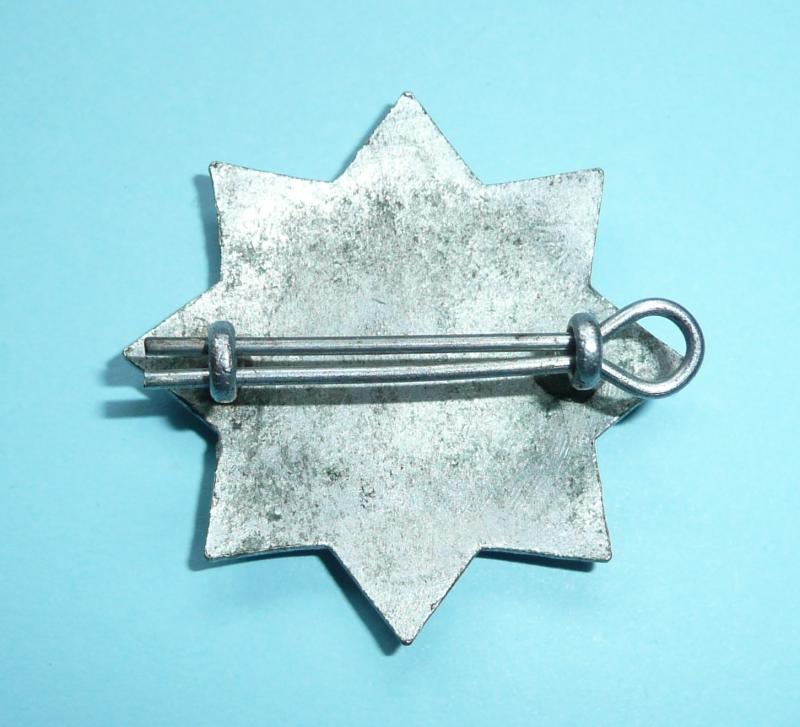 A good early and original Second World War period 'Auxiliary Fire Service cap badge'; die-cast chromium plated eight pointed star, with red enamel 'AFS' lettering to the centre. Good condition, some signs of service wear but otherwise complete with original two loop fittings and original chromed split pin, no damage to the enamel, minor service wear. As also worn by women AFS firefighters. Circa 40mm tall.