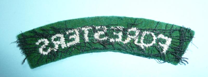 A cloth embroidered shoulder title for the Notts & Derby Regiment (FORESTERS). Some wear to lose black mesh backing otherwise in good overall condition. Comm RoHa (B3)