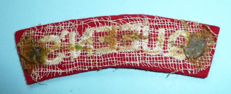 A loose white meshed backed embroidered shoulder title, in good overall condition.