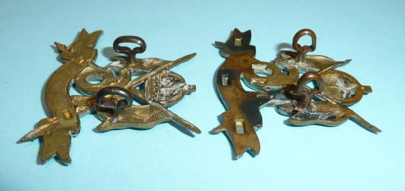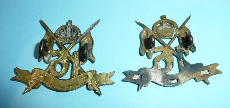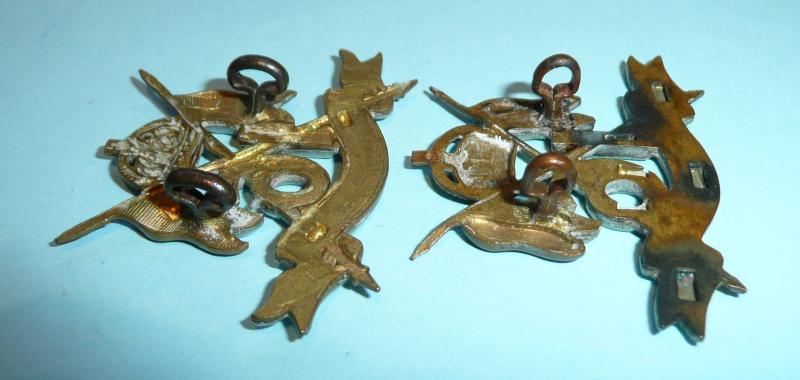 A rare pair of collar badges, not matching but display reasonably well together from the front. Two original loops to the reverse of each and braising / sweat holes to reverse of both. Rare as only worn without the "The" from 1902 - 1904. King's crown.