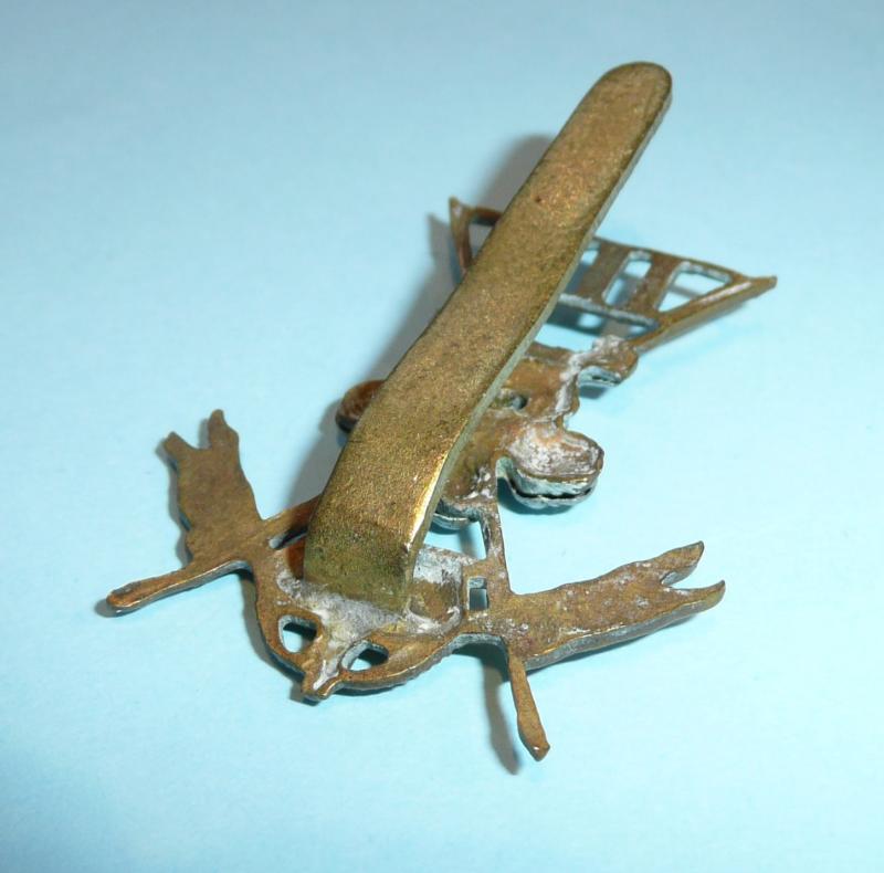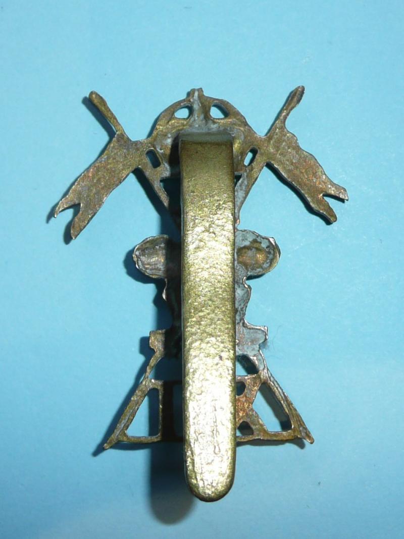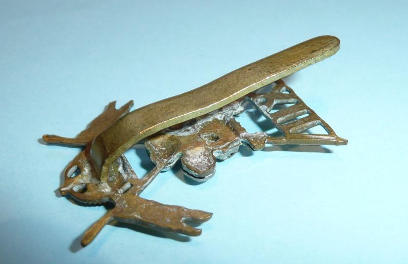 Pre 1903 cast pattern for extra strength with correctly mounted King's crown and original slider. Single braising / sweat hole behind the PoW feathers. This version with all brass pennons to the lances (usually found with a white metal / silver overlay). In good overall condition.
