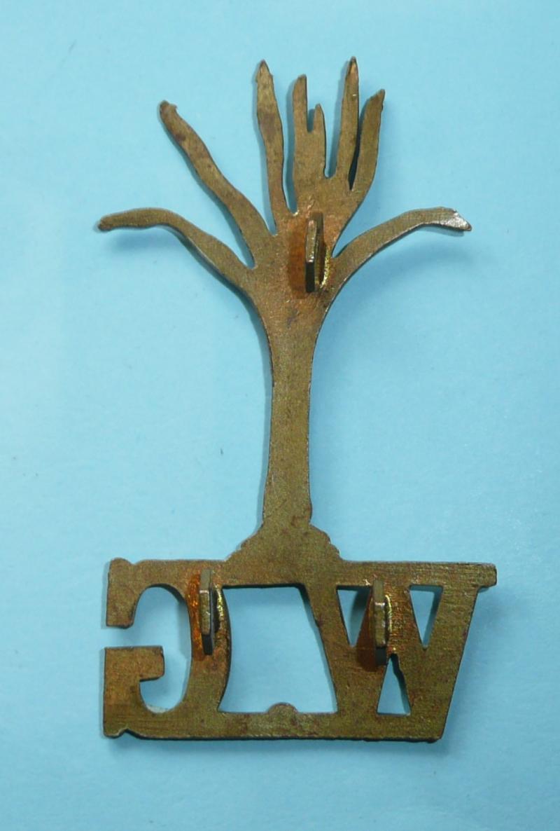 A one piece brass shoulder title with original lugs, In very good condition. The Welsh Guards were first raised in 1915. Westlake No 716 refers. K42.8