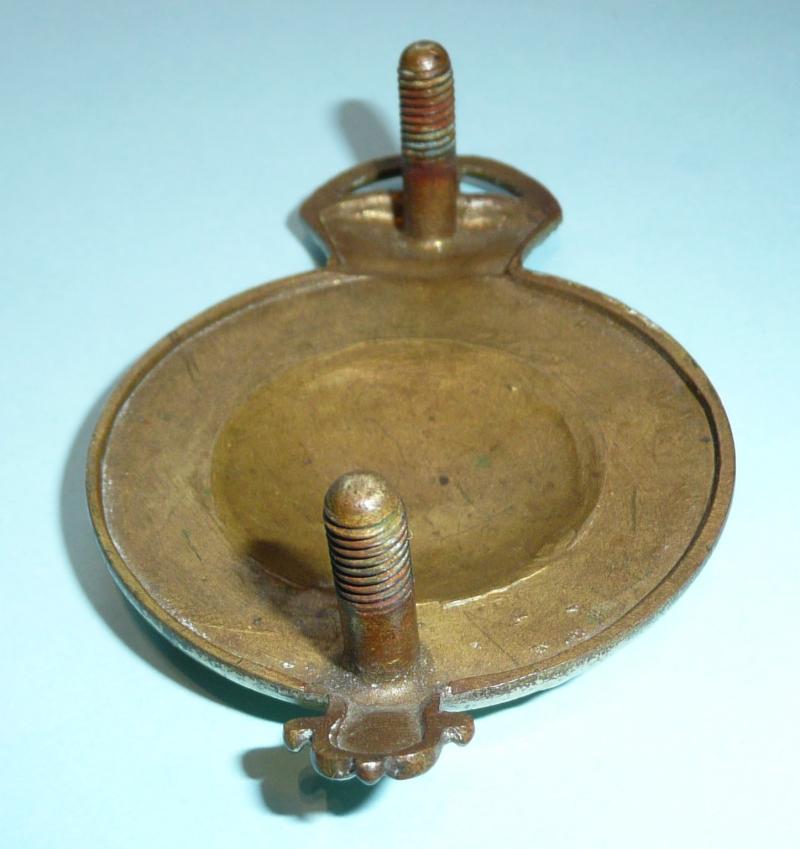 A large and impressive die cast Gilt brass horse furniture bit boss / martingale Badge with two original screwposts to the reverse. Circa 8.8cms tall. King’s crown. This pattern worn from 1913 - 1922. Gilt in good condition. A cracker!
